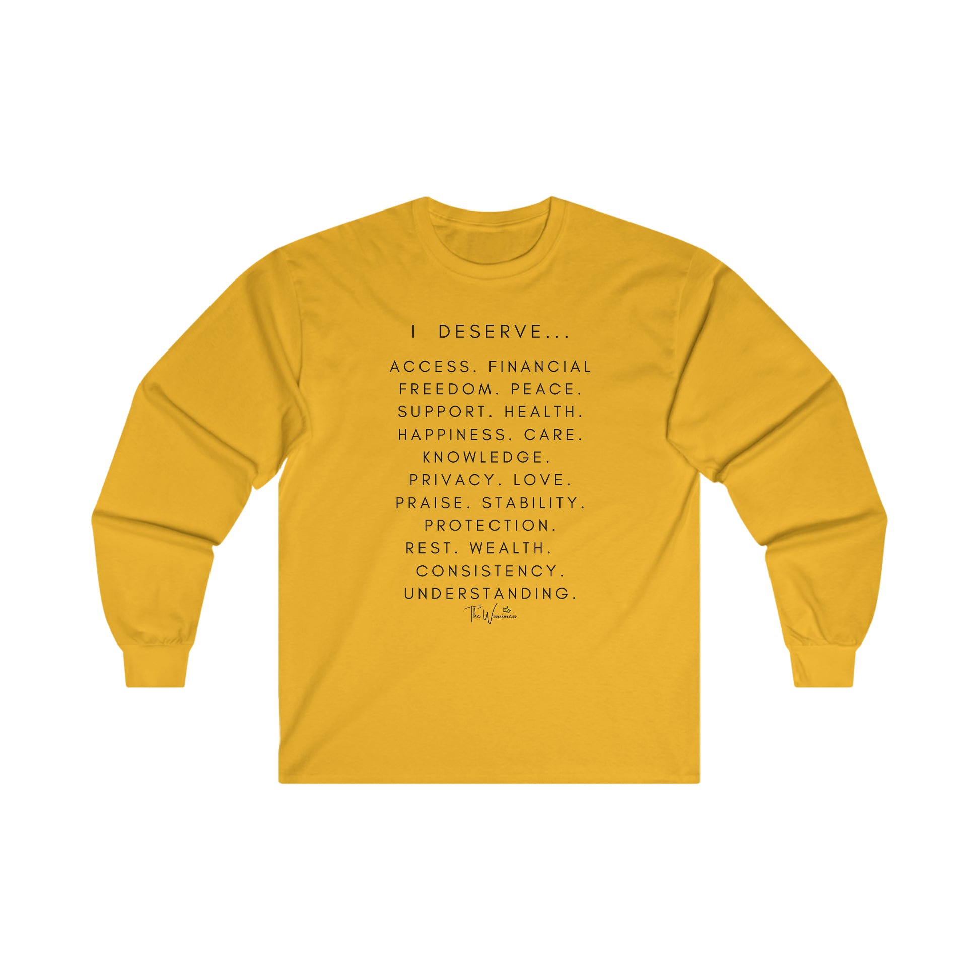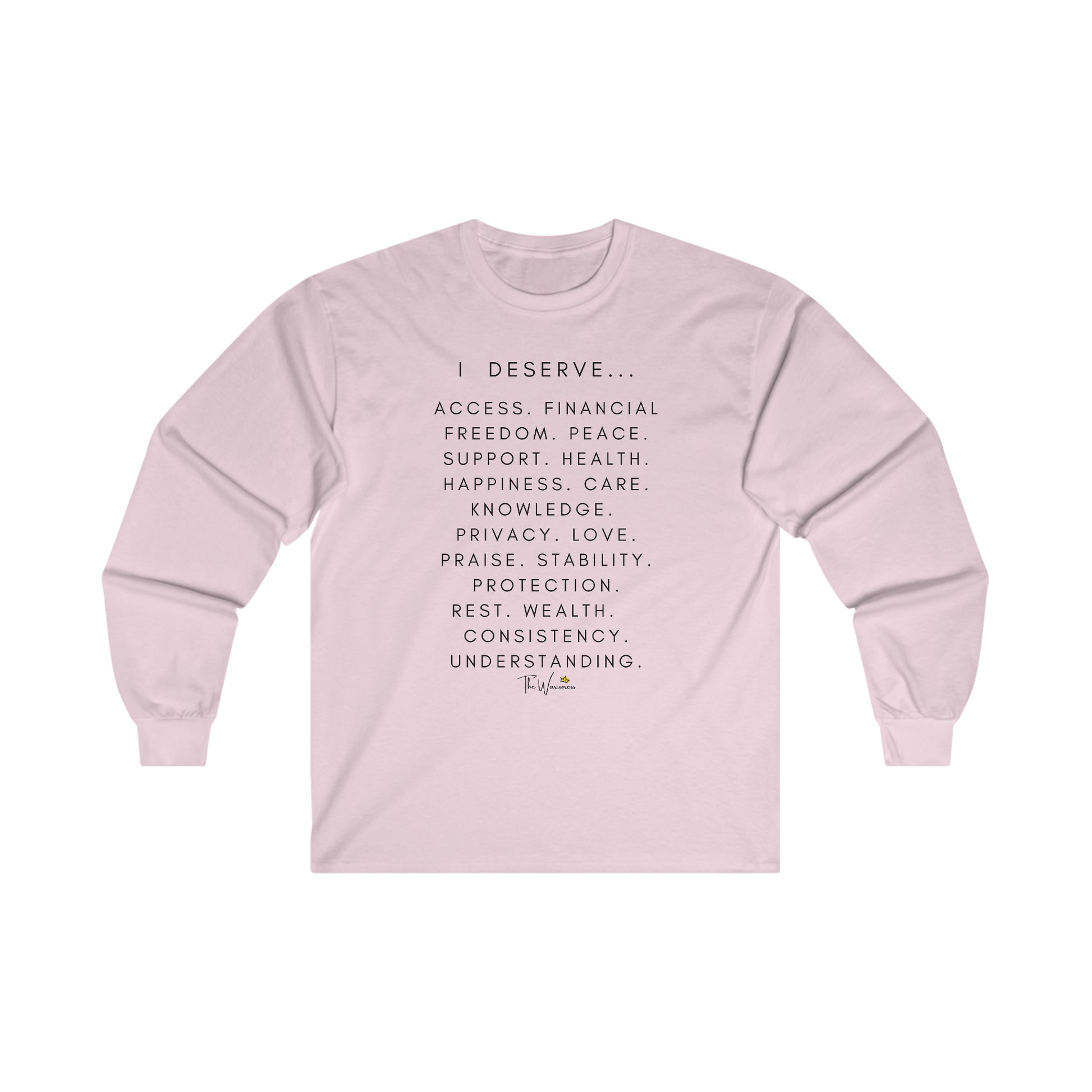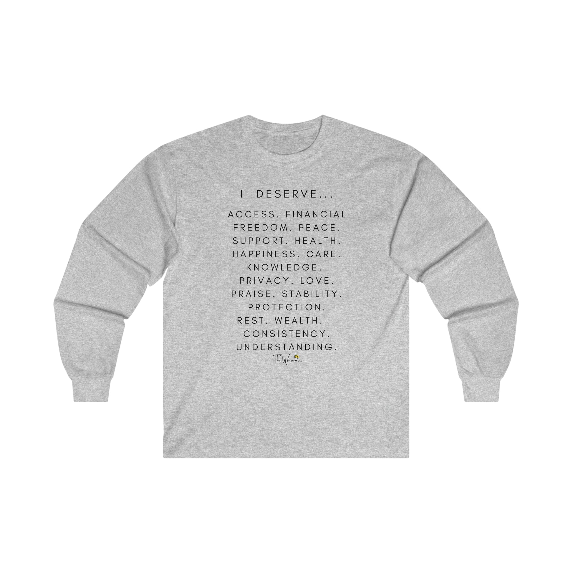 This ultra cotton long sleeve tee is pure comfort and the message is spreading awareness for women's rights. I deserve the world and so much more!