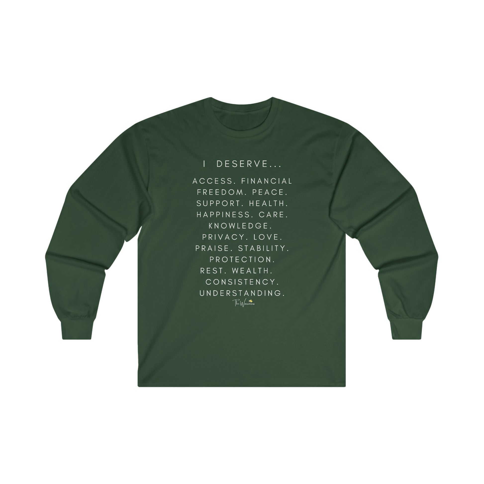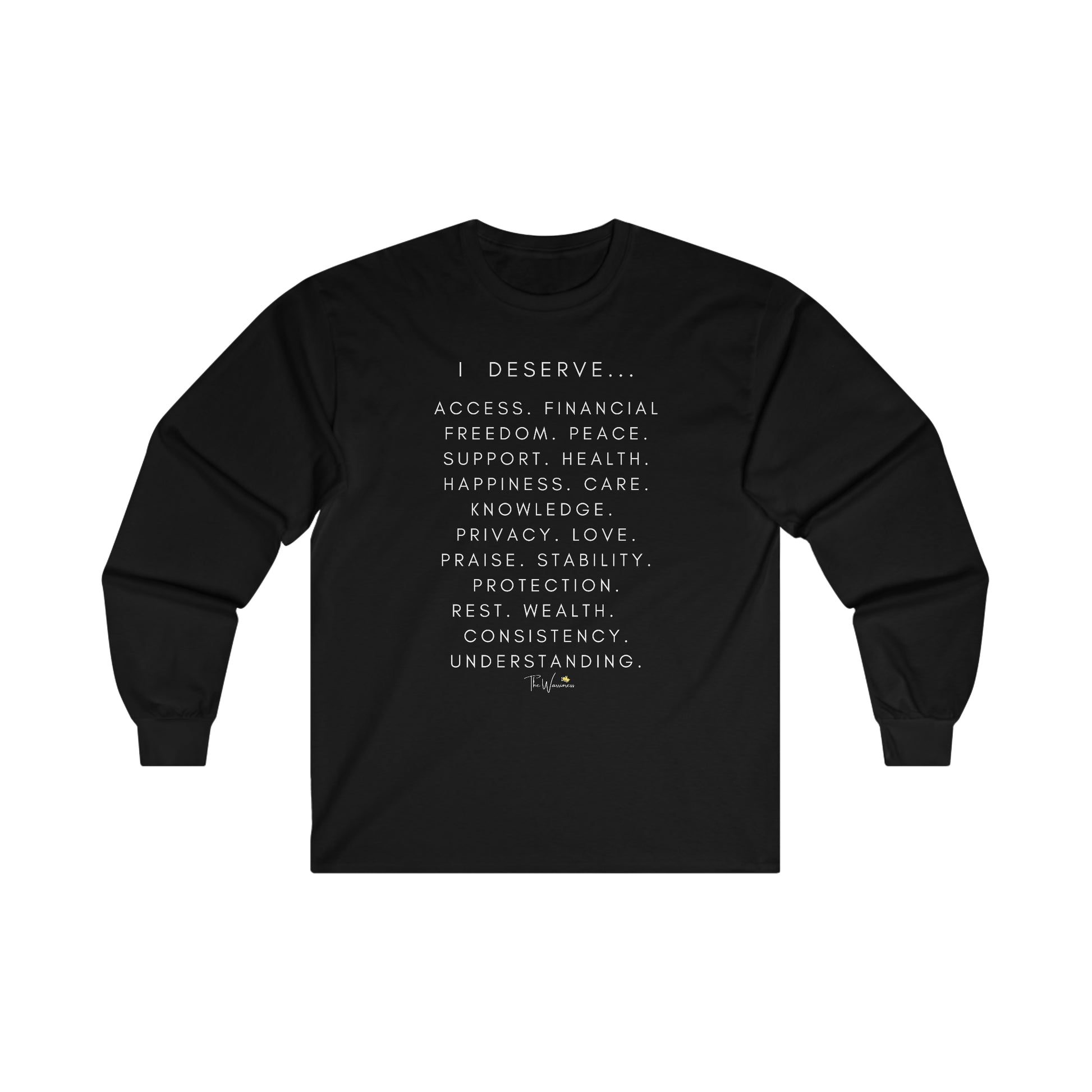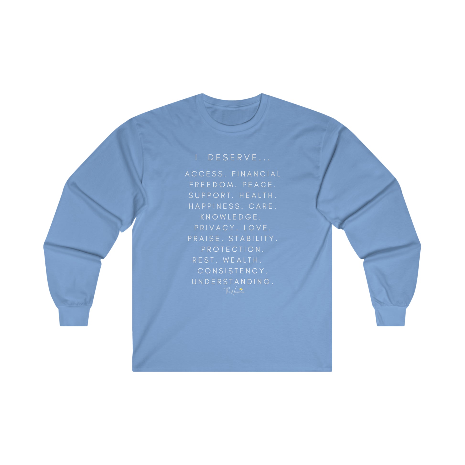 This ultra cotton long sleeve tee is pure comfort and the message is spreading awareness for women's rights. I deserve the world and so much more!