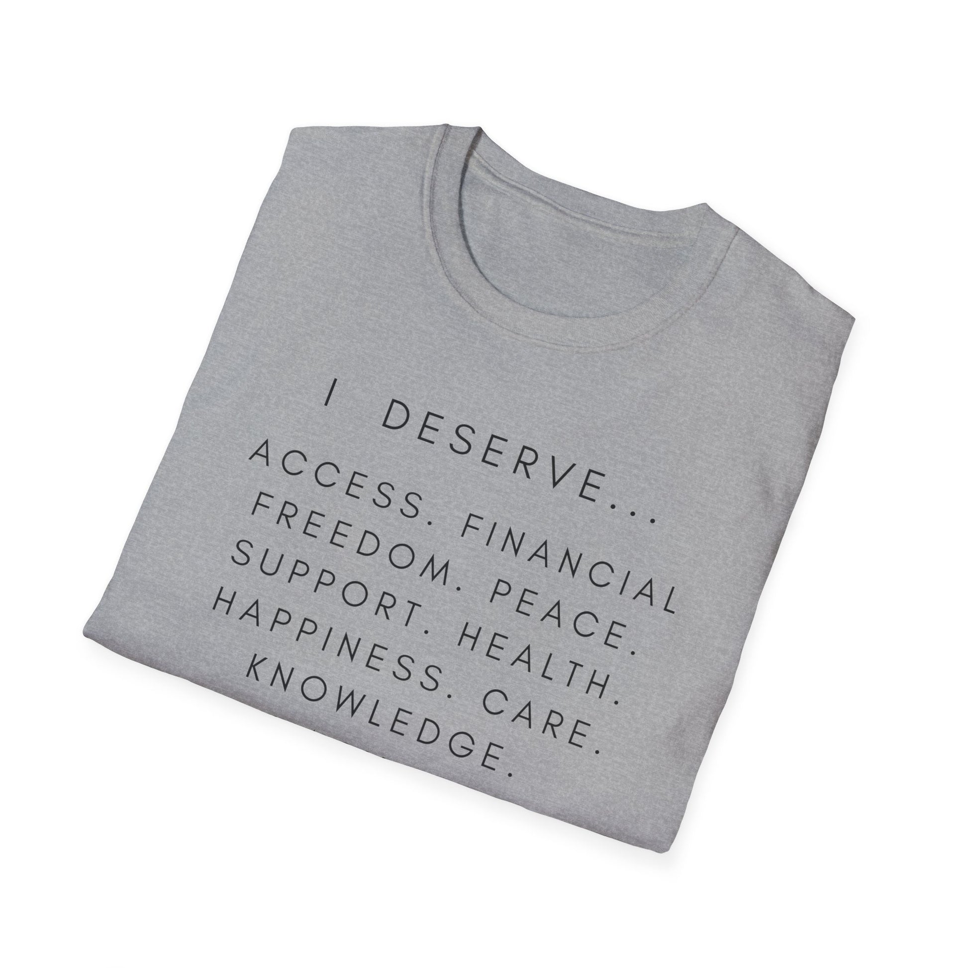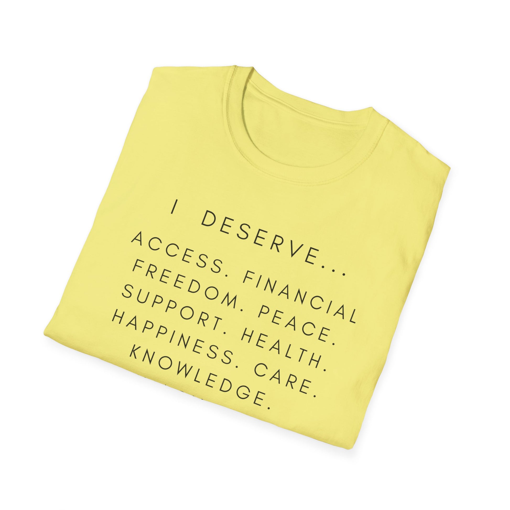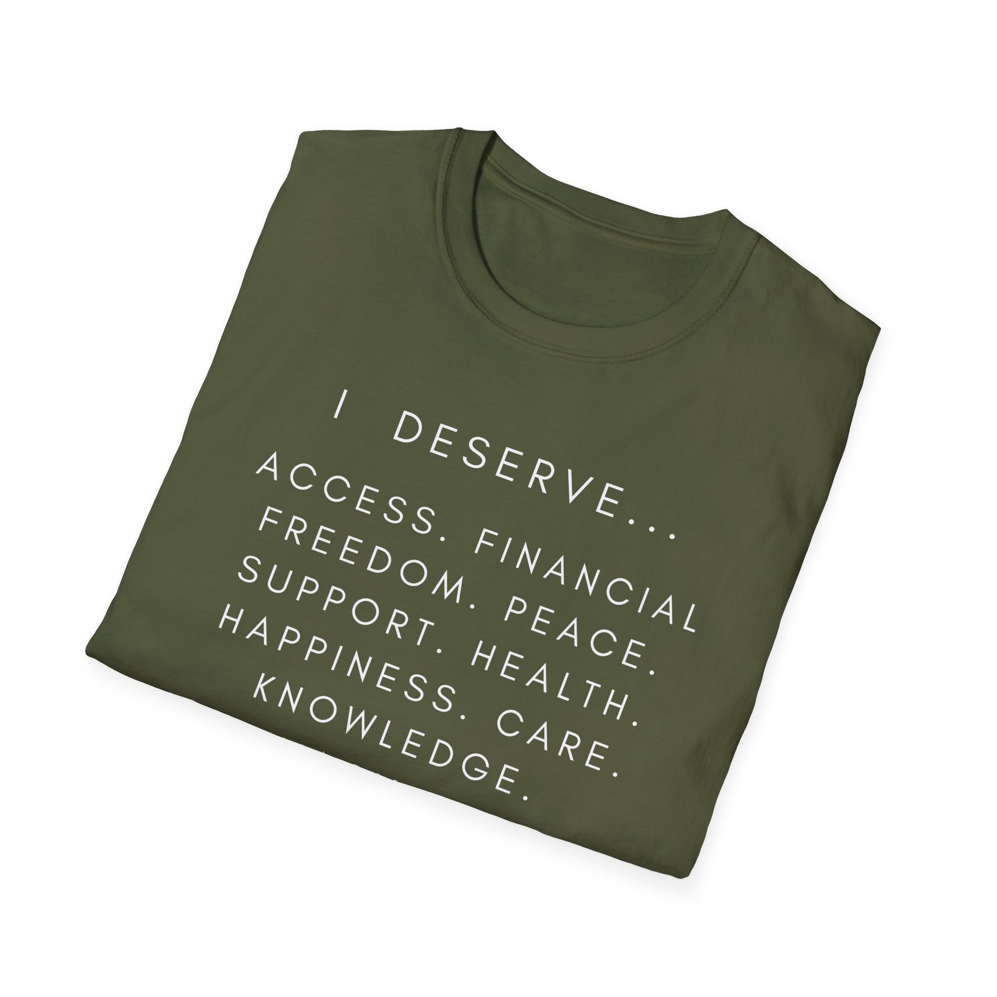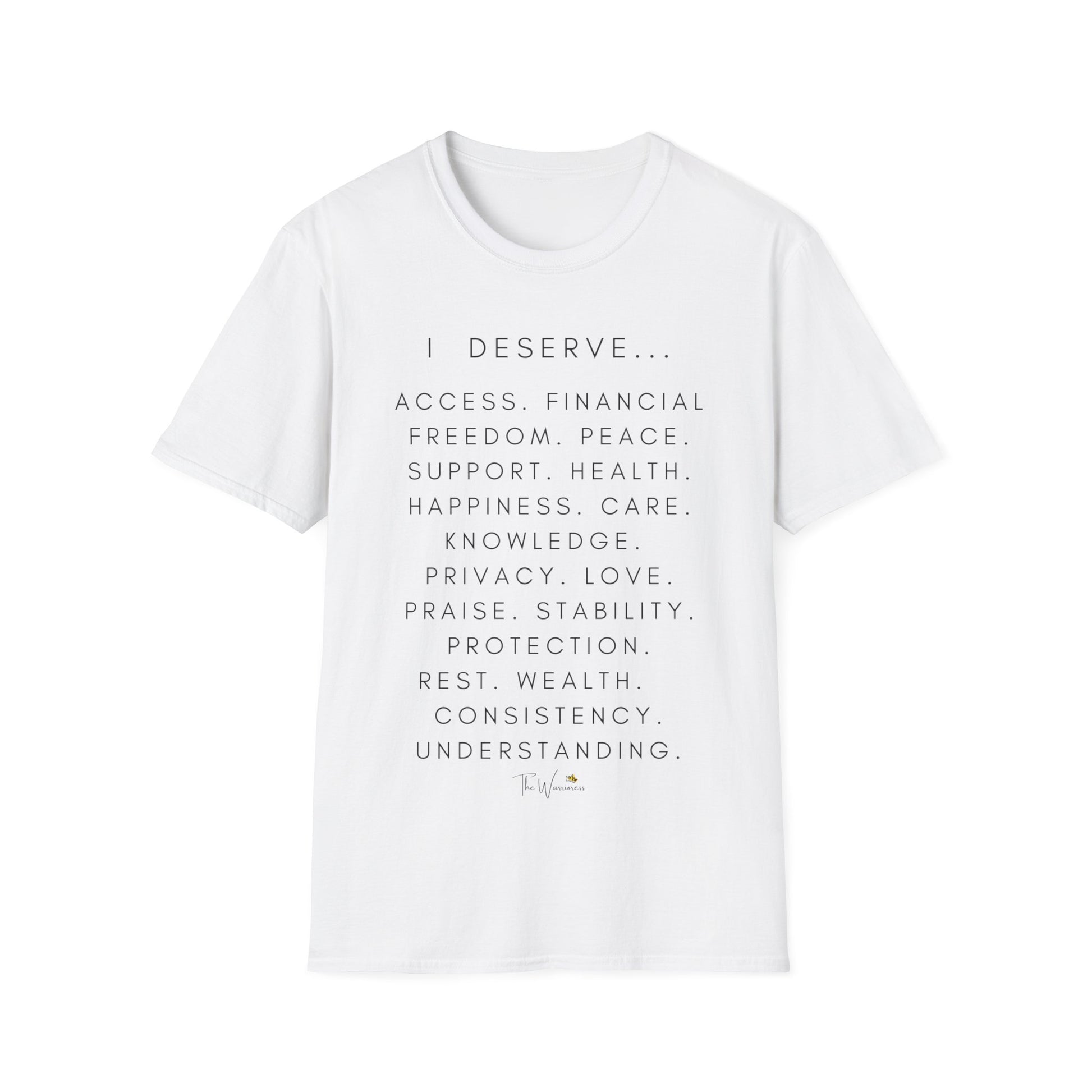 The unisex soft-style t-shirt puts a new spin on casual comfort reminding the world of all the things you deserve!