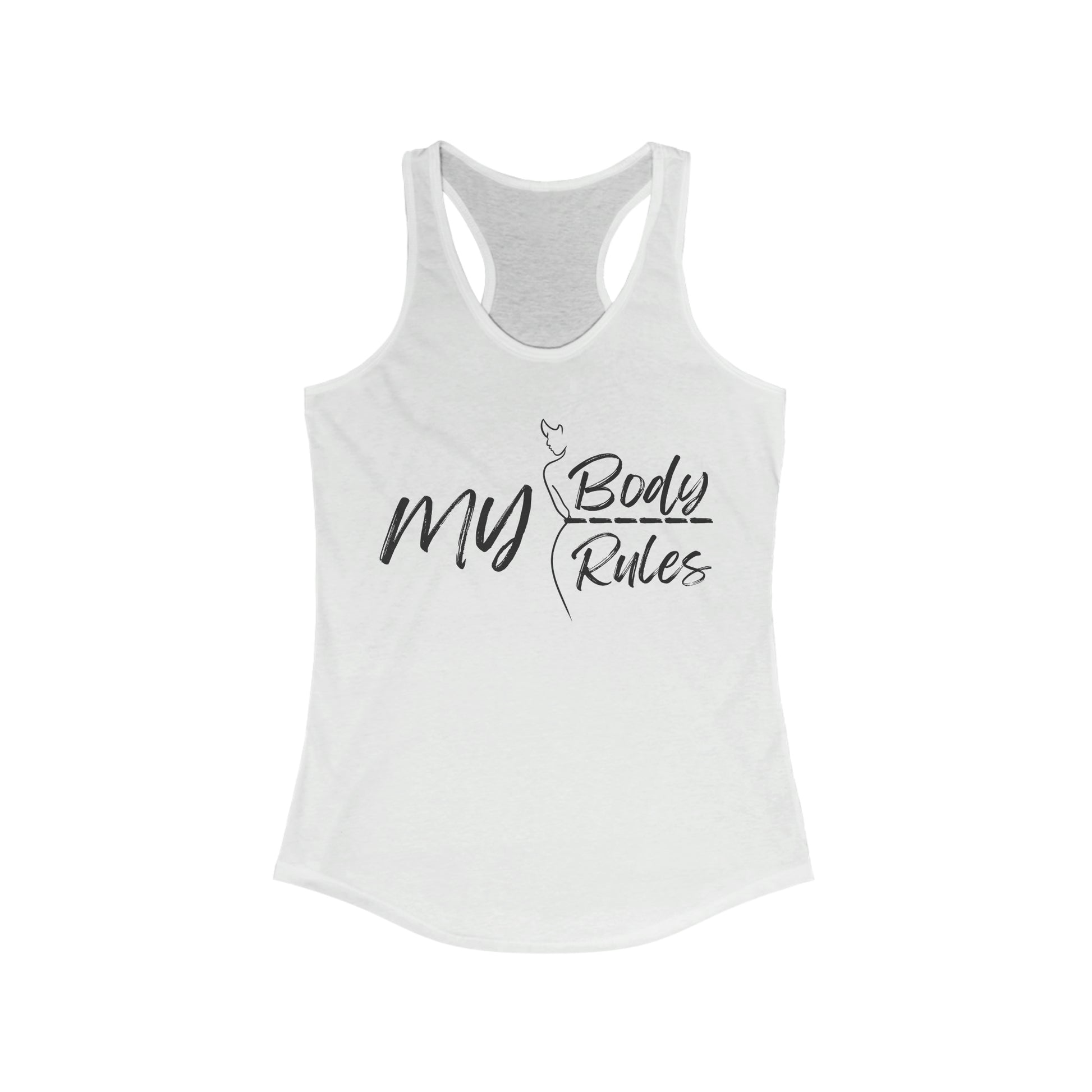A high-quality print of this slim fit tank-top will turn heads and the message is spreading awareness for women's rights. I am the owner of my body! Bystanders won't be disappointed - the racerback cut looks good on any woman's shoulders.